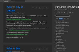 Notes about playing City of Heroes. Yeah, it is a 15yr old game, but it is still fun, and has a great community. Plus it is free.