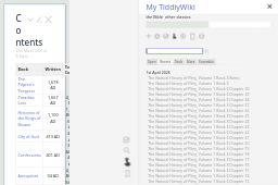 Backed by the english dictionary and TiddlyWiki's freelinks : the Bible, Jospehus, Pliny's Natural History, Paradise Lost, Monmouth's Kings of Britain and other Great Works